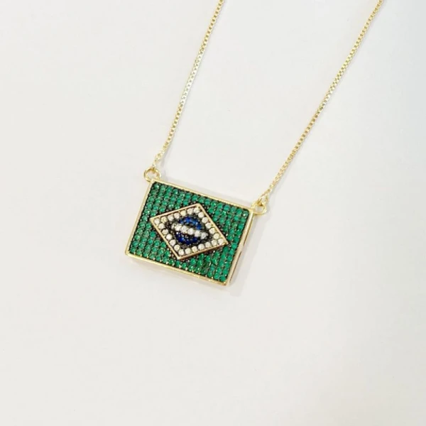 Colar Bandeira do Brasil Cravejado – Banhado a Ouro 18K